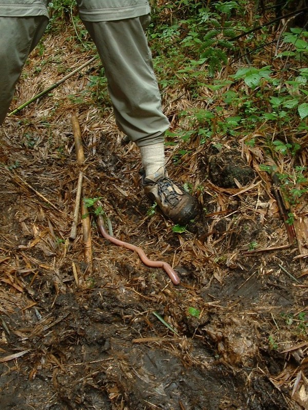 Along the pathway in Mgaringa Gorilla National Park. How big is the fish that you try to catch with him?