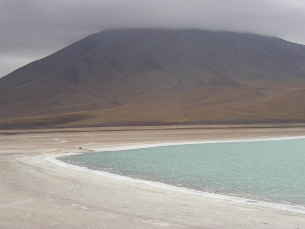 Salar de Uyuni trip, Day 3. This is the very Southwest point in Bolivia. It is here that people can leave the tour and cross over to Chile. The lake changes colour depending on the weather.