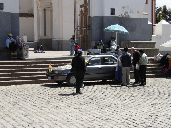 Blessing a car - Copacabana, Bolivia