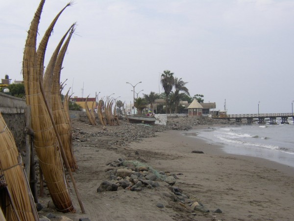 Huanchaco Beach. The design of the reed boats hasn't changed for 1500 years.