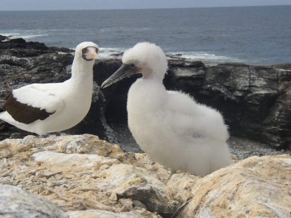 Masked Boobie and chick, Galapagos Islands.