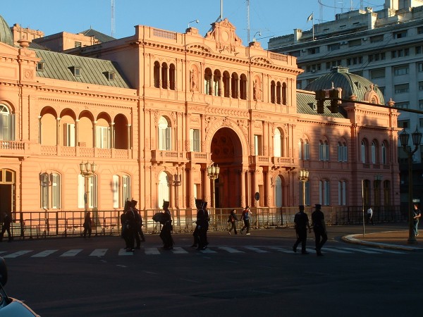 This is the residence of El Presidente de Argentina. Only the western fasçade is painted pink, from which the building gets its name. Imagine Evita Peron delivering an address from the central balcony during the 1940's.