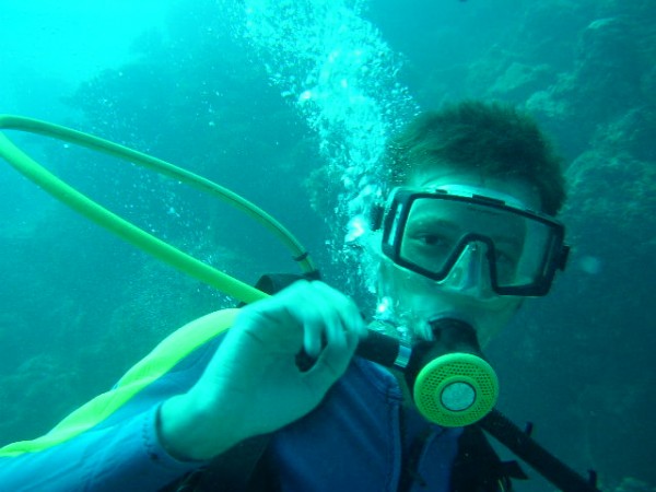 Mark diving on the Great Astrolobe Reef near Ono, Fiji