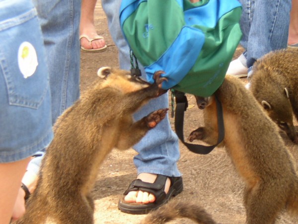 Strange racoon like creatures on the Brazilian side of the Iguazu Falls. I opened my bag and one jumped in a stole my banana.