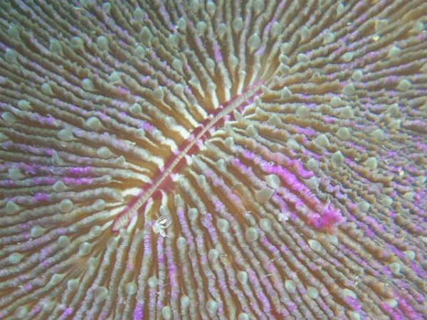 Mushroom Coral. Has a good latin name - Fungia Horrida. Unlike most corals it can move with tides and consists of one large polyp that can handle larger food. Taken while diving near Taveuni, Fiji.